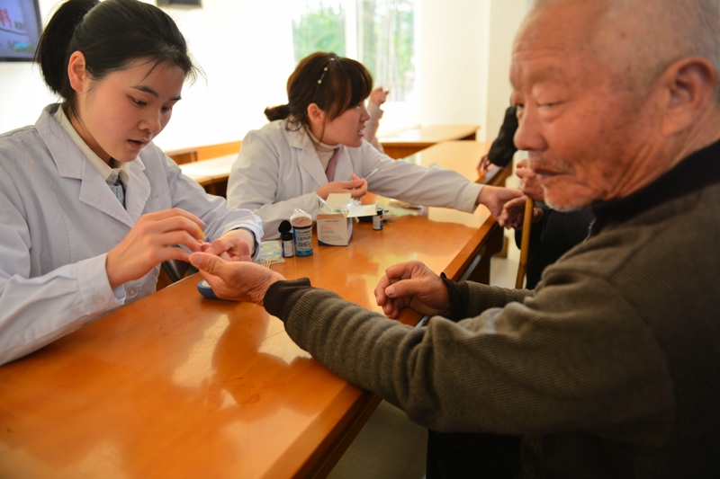 上午9時(shí)許,志愿者就來到敬老院,敬老院的工作人員已經(jīng)提早安排布置了場(chǎng)地,許多老年人則一早就在一旁排隊(duì)等候。在體檢現(xiàn)場(chǎng),我院志愿者各施所長,醫(yī)生為老人們進(jìn)行健康檢查,聽老人講述自己的病癥,耐心地向老人講述疾病預(yù)防知識(shí)和飲食起居中的注意事項(xiàng),并送上免費(fèi)的藥品;護(hù)士耐心地給每位老人量血壓、測(cè)血糖;其他志愿者則做起了清潔衛(wèi)生服務(wù),有的打掃天花板、有的擦拭窗戶、有的掃地拖地。此外,我們的志愿者還向老人傳授春季養(yǎng)生保健知識(shí),教老人跳“手指健康操”,幫助老人們疏通經(jīng)絡(luò),強(qiáng)身健體。整個(gè)義診現(xiàn)場(chǎng)愛意融融。