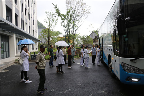 還有,住院大樓門口,護士們逐一核對病人人數(shù),并以10個人為小單位,清點核對人員,確保病人如數(shù)安全入駐病房。
