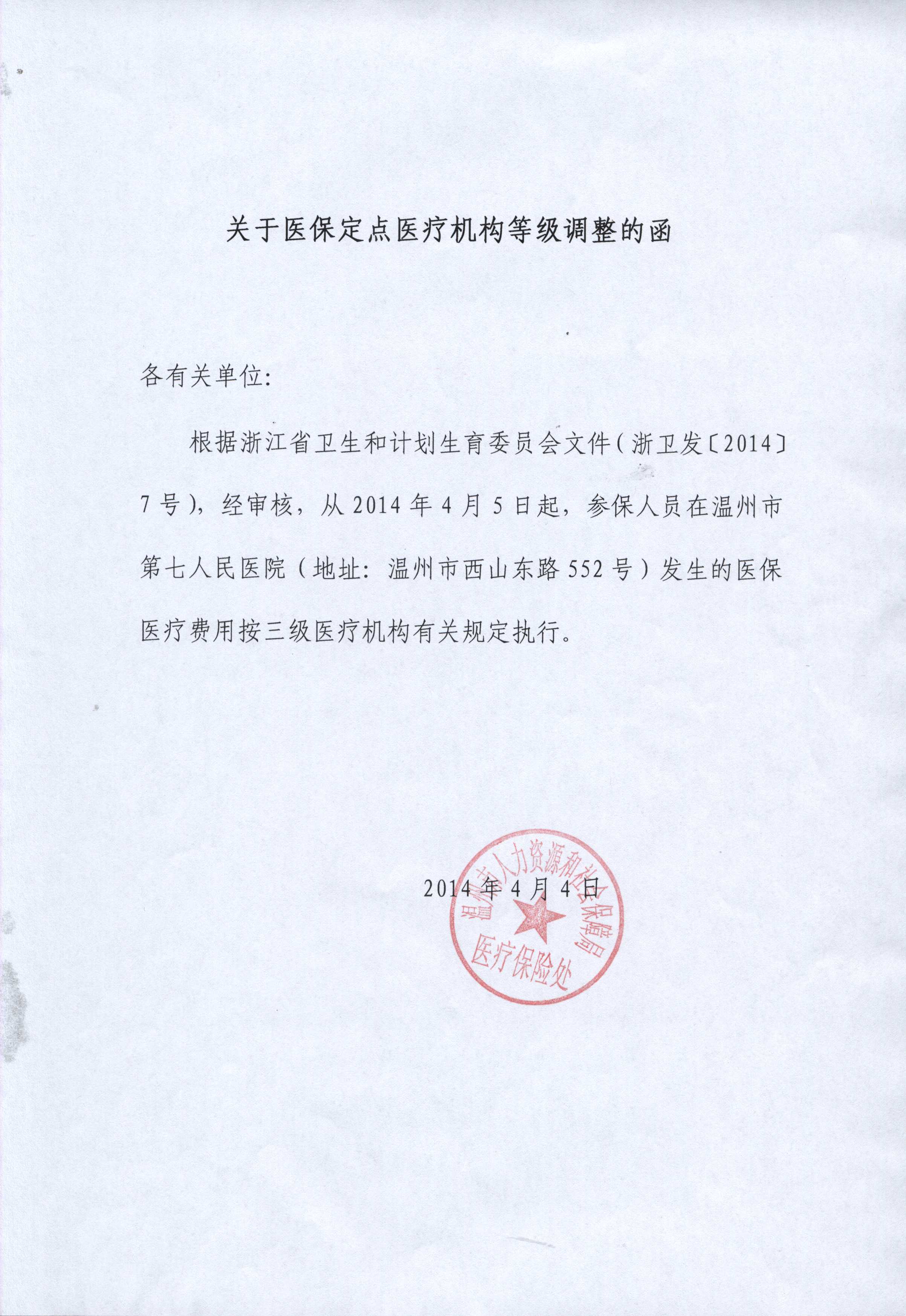 關(guān)于醫(yī)保定點醫(yī)療機構(gòu)等級調(diào)整的函