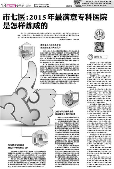 近日,2015年醫(yī)院總體滿意度(門診+出院)第三方評議結(jié)果出爐,溫州市第七人民醫(yī)院名列榜首。作為我市唯一一家公立精神衛(wèi)生??漆t(yī)院,溫州市第七人民醫(yī)院是如何贏得市民的信賴的?不妨一起來看看在剛剛過去的2015年,這家醫(yī)院都做了哪些有益的探索。