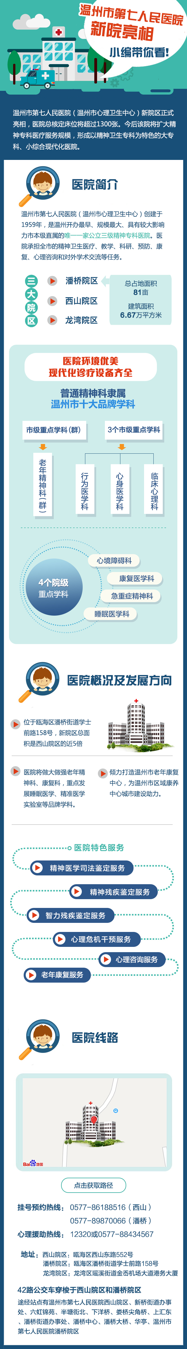 溫州市衛(wèi)計(jì)委有關(guān)負(fù)責(zé)人表示,溫州七醫(yī)新院區(qū)開診是溫州醫(yī)療資源、布局往西片的再次延伸,也是精神衛(wèi)生??漆t(yī)院發(fā)展的歷史性邁步。今后,醫(yī)院將以???、全科、學(xué)科“三駕馬車”為動力,努力打造區(qū)域一流的精神衛(wèi)生??漆t(yī)院。