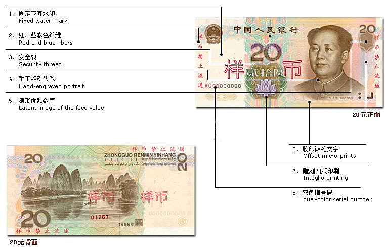 第一步,傳統(tǒng)做法就是將紙幣正面左部抬過(guò)頭頂,看其是否有花卉水印以及20元的隱形數(shù)字